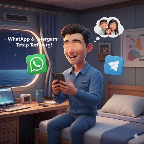 Tips Pelaut: Manfaatkan saat kapal merapat di pelabuhan atau saat ada area dengan sinyal seluler. Kalau kapal punya Wi-Fi satelit, ini adalah aplikasi utama untuk komunikasi sehari-hari (biasanya teks, karena video call butuh bandwith besar).